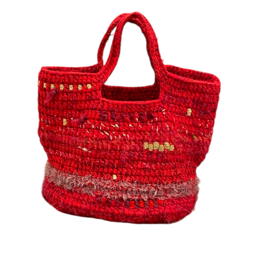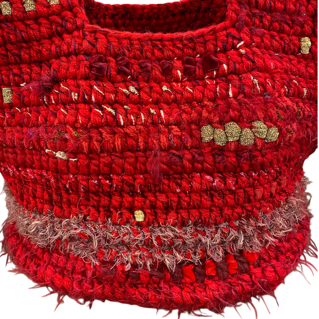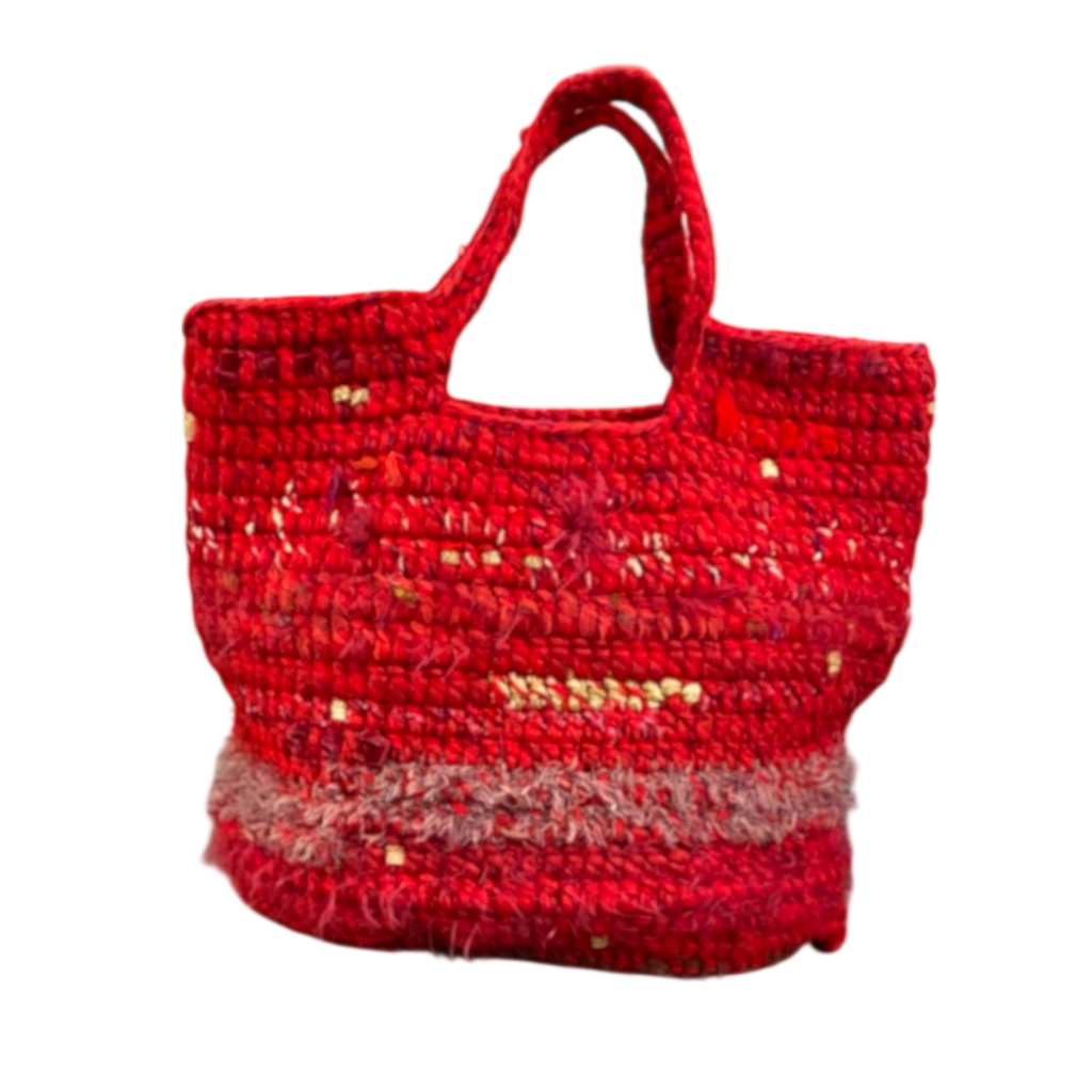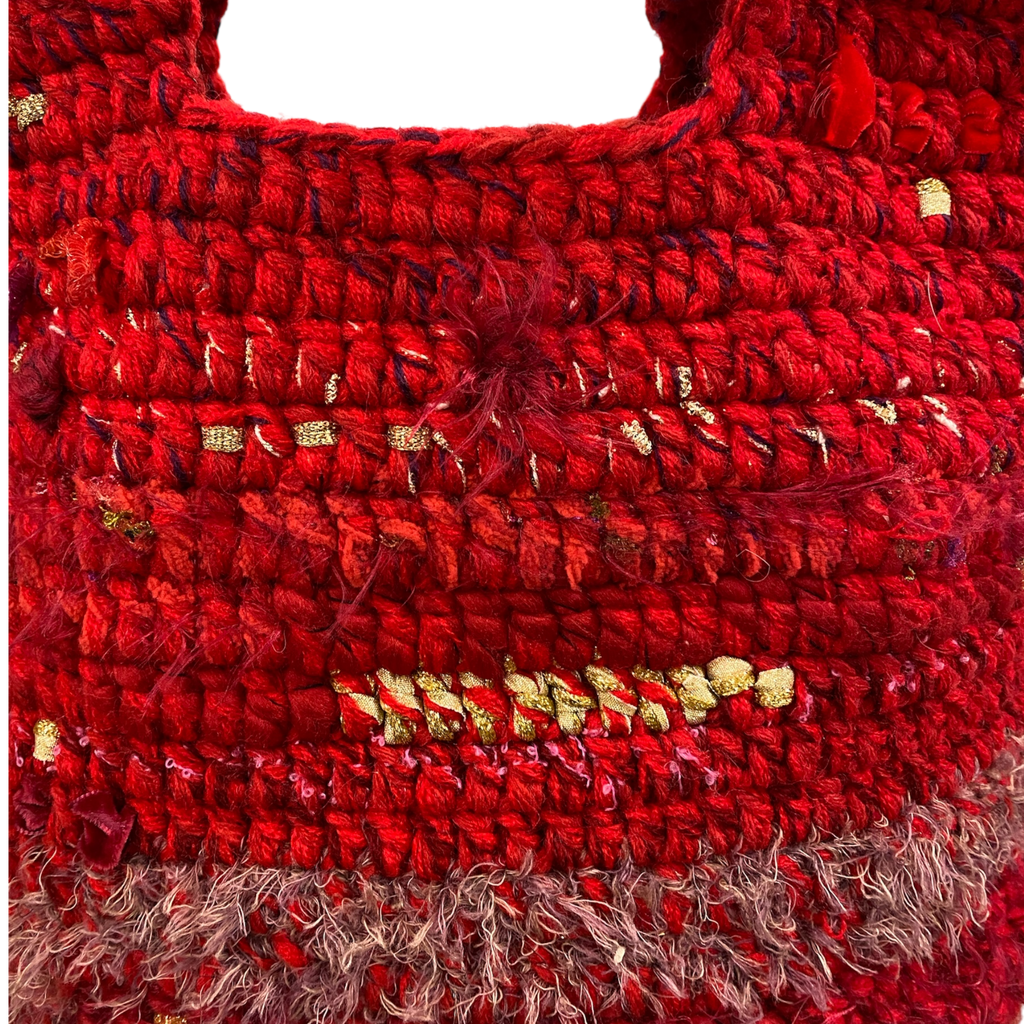 Borsa grande realizzata a mano con la tecnica del crochet. La borsa non ha cuciture ed è realizzata con filati diversi.