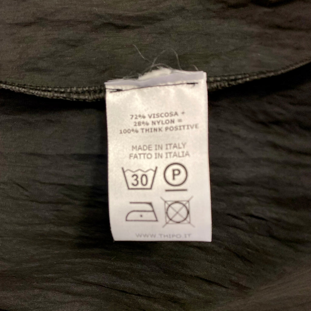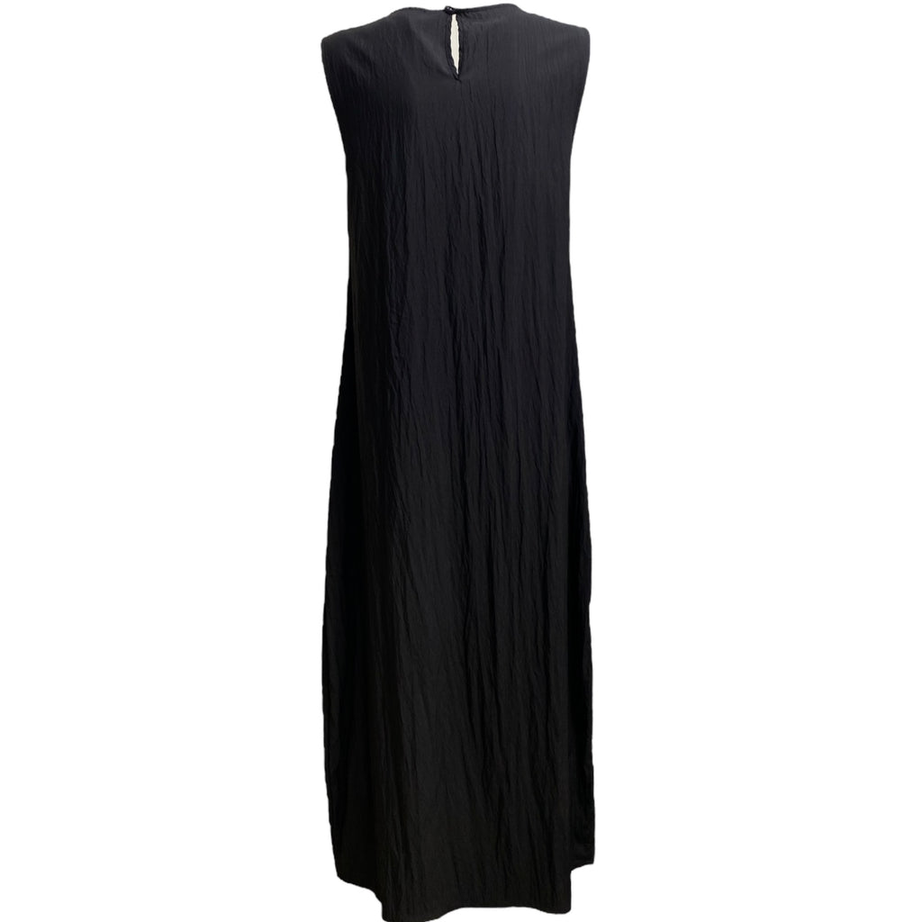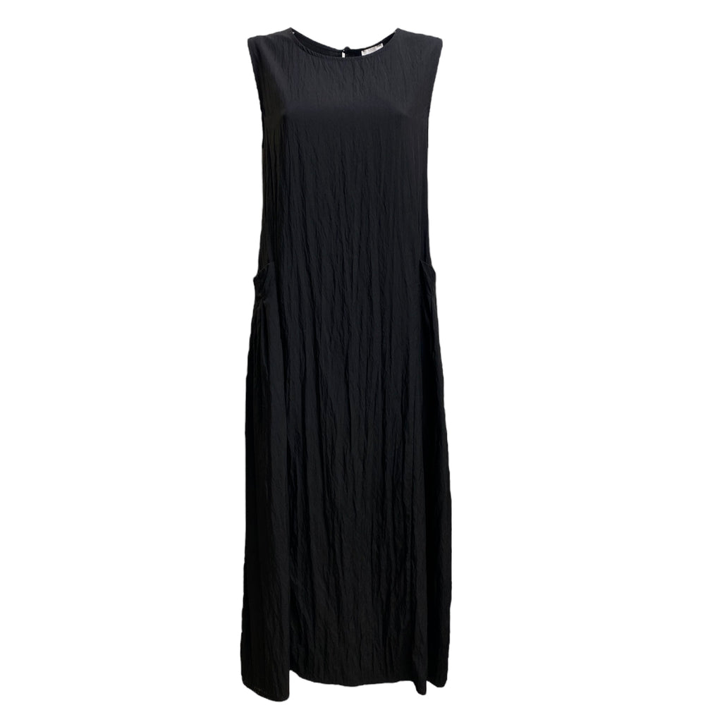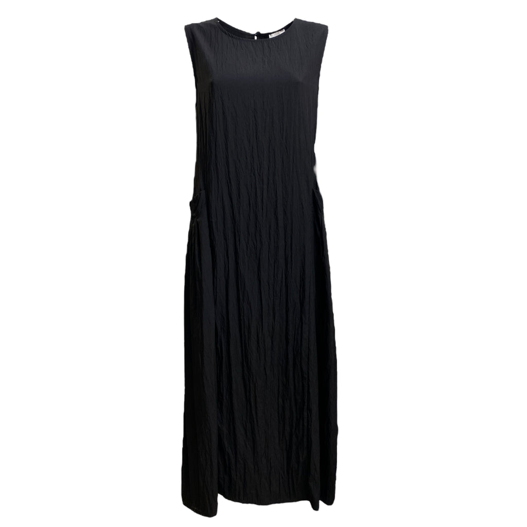 Abito nero lungo in tessuto stropicciato di viscosa con tasche.