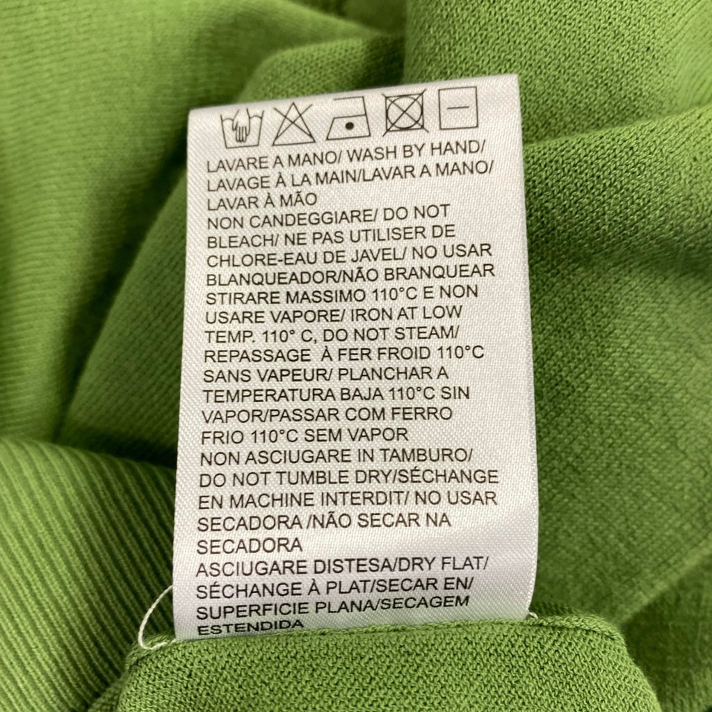 Cardigan corto in filo di cotone verde, manica 3/4, rifinitura con passamaneria.