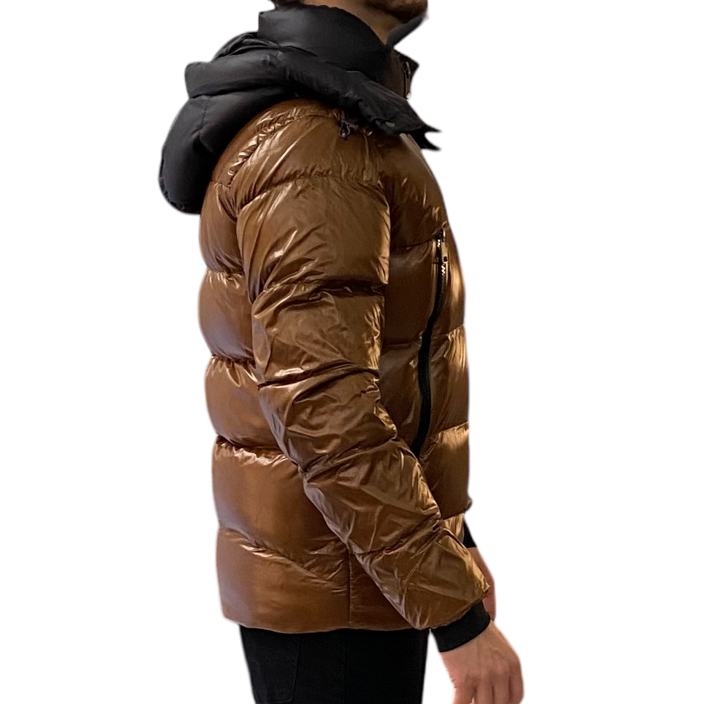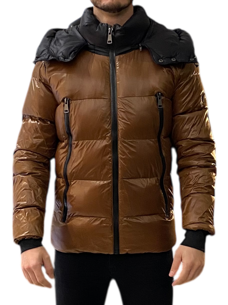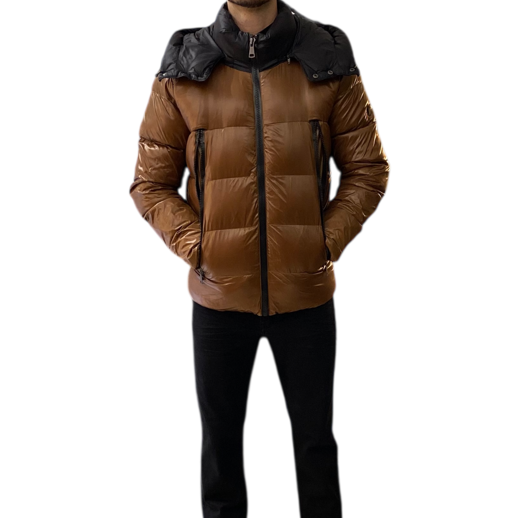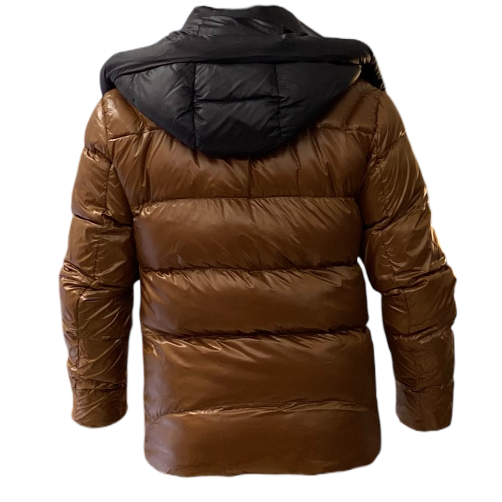 Caldo giaccone imbottito con cappuccio rimovibile, chiusura con cerniera, tasche con cerniera, polsino.