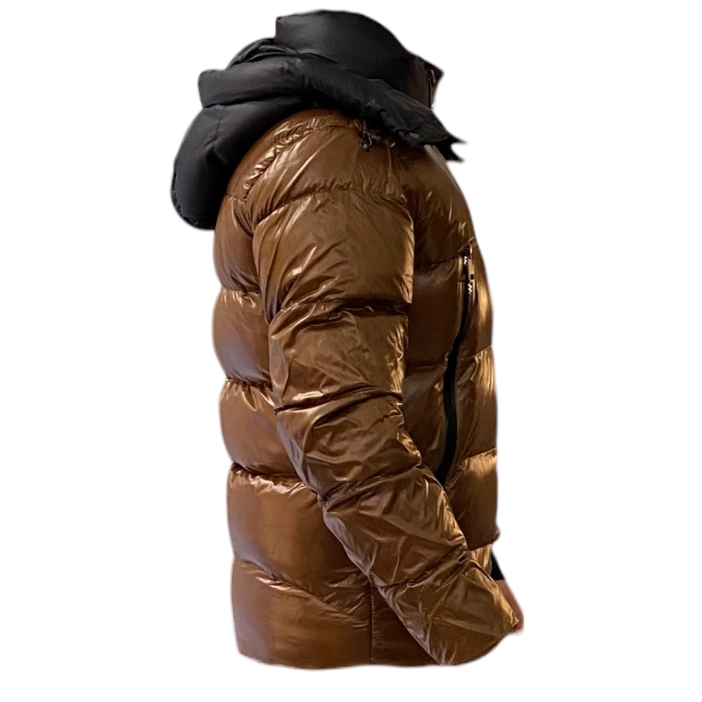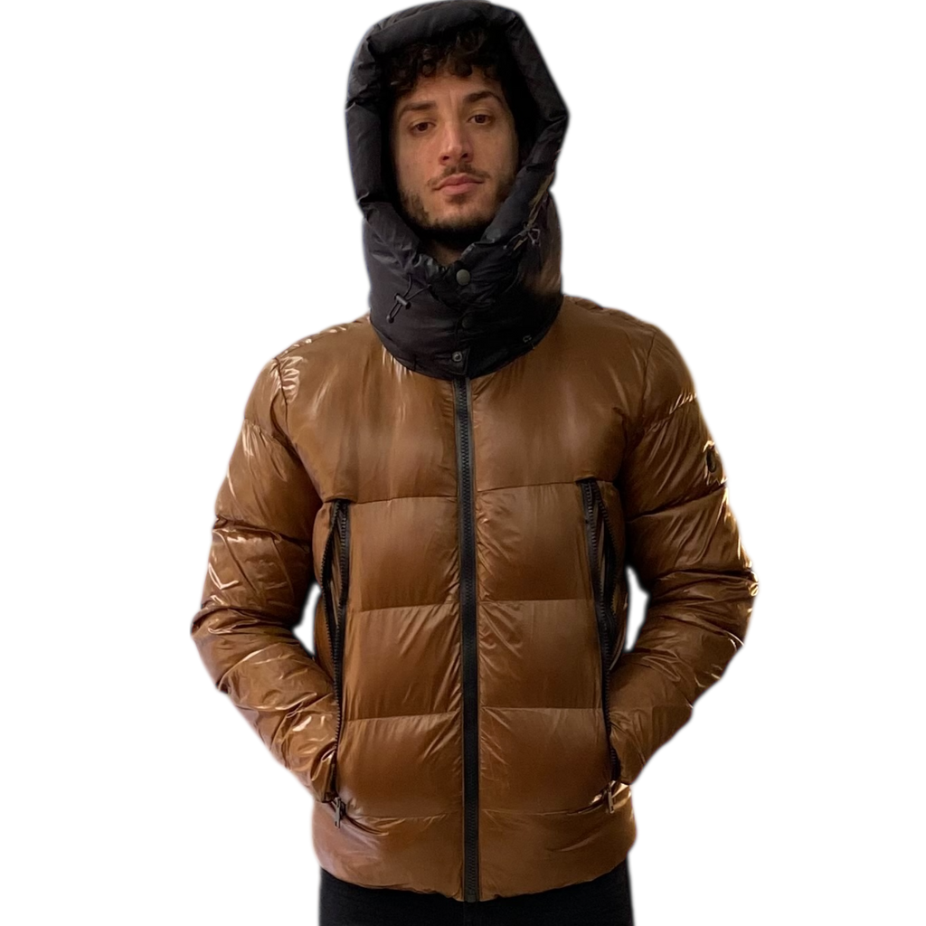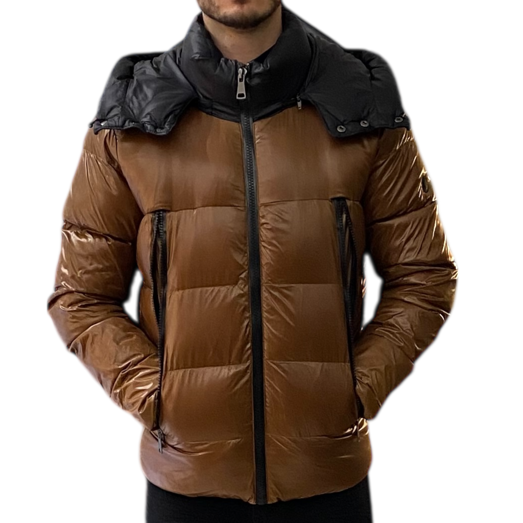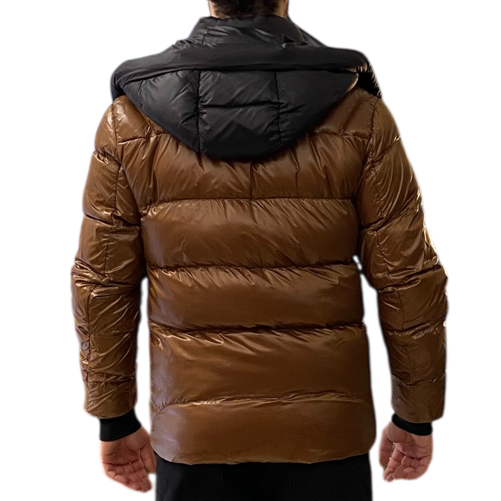 Caldo giaccone imbottito con cappuccio rimovibile, chiusura con cerniera, tasche con cerniera, polsino.
