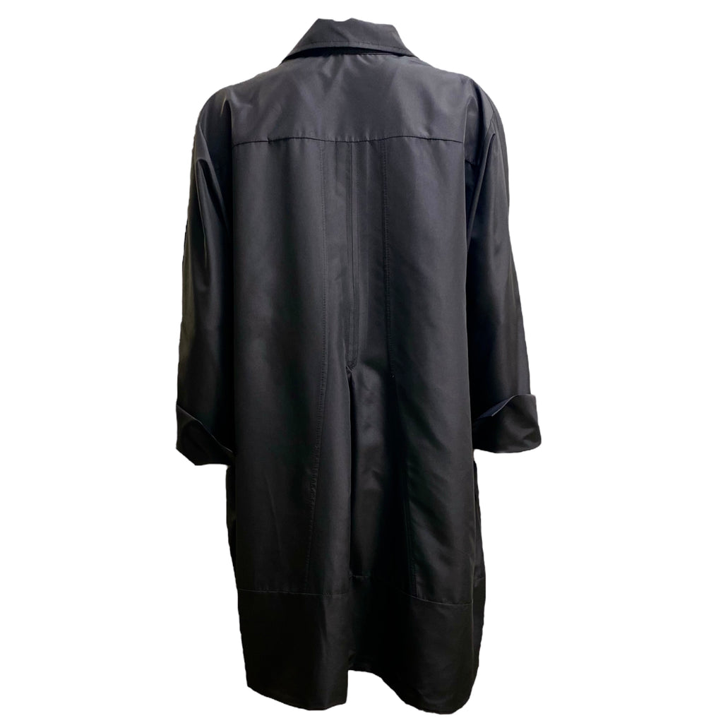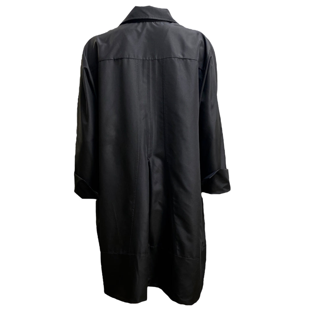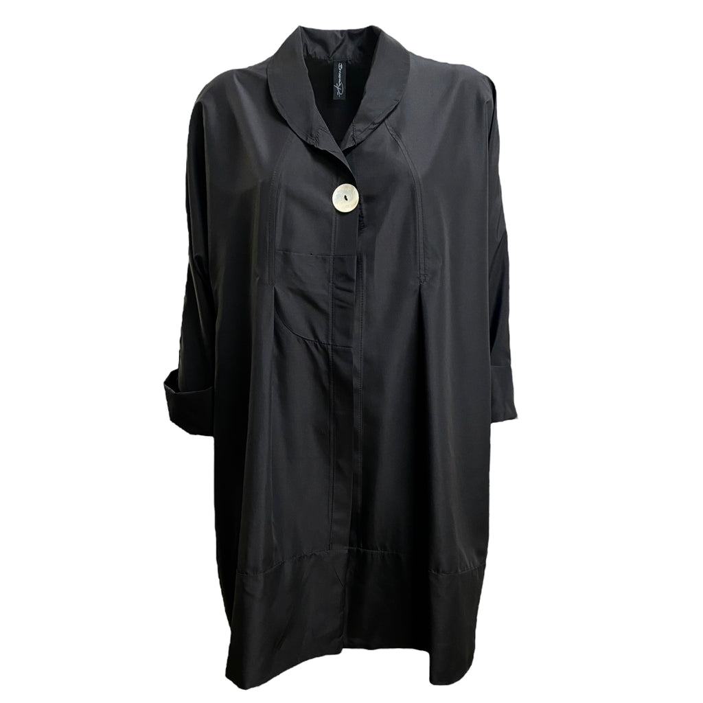 Spolverino nero leggero con tasche, chiusura con bottone.